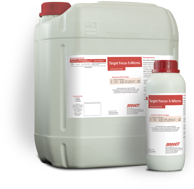 Focus S-Micros é um fertilizante foliar com alta concentração de Enxofre, fundamental para a produção de aminoácidos e proteínas.